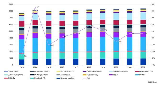来到 2026 年,尽管 4K+ LCD 电视面板的出货规模将迎来增长,但 IT 与移动端的 DDIC 出货将受到存储器“超级周期”的拖累,因此各细分市场的需求之和预计将保持平稳。返回搜狐,查看更多